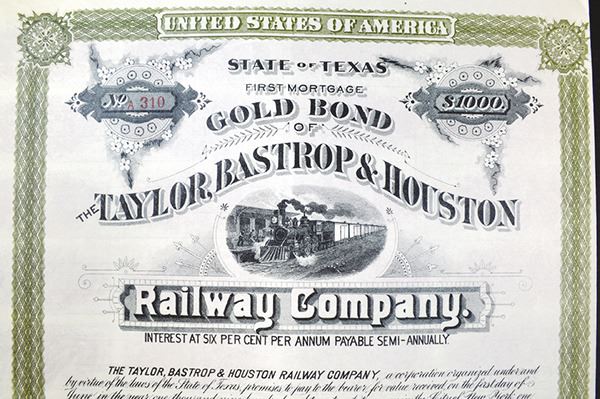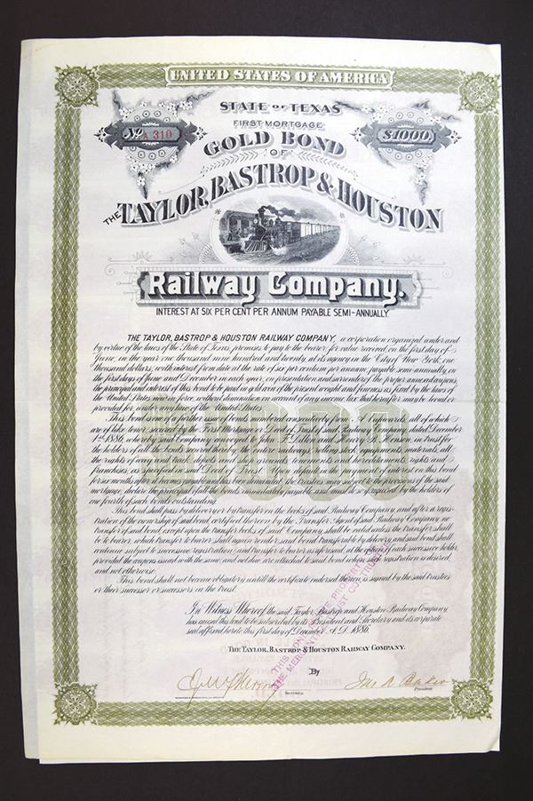Texas. $1000 6% Gold Coupon Bond. Signed, numbered, all coupons remain. Large format, coupons at sides. Very Fine +.