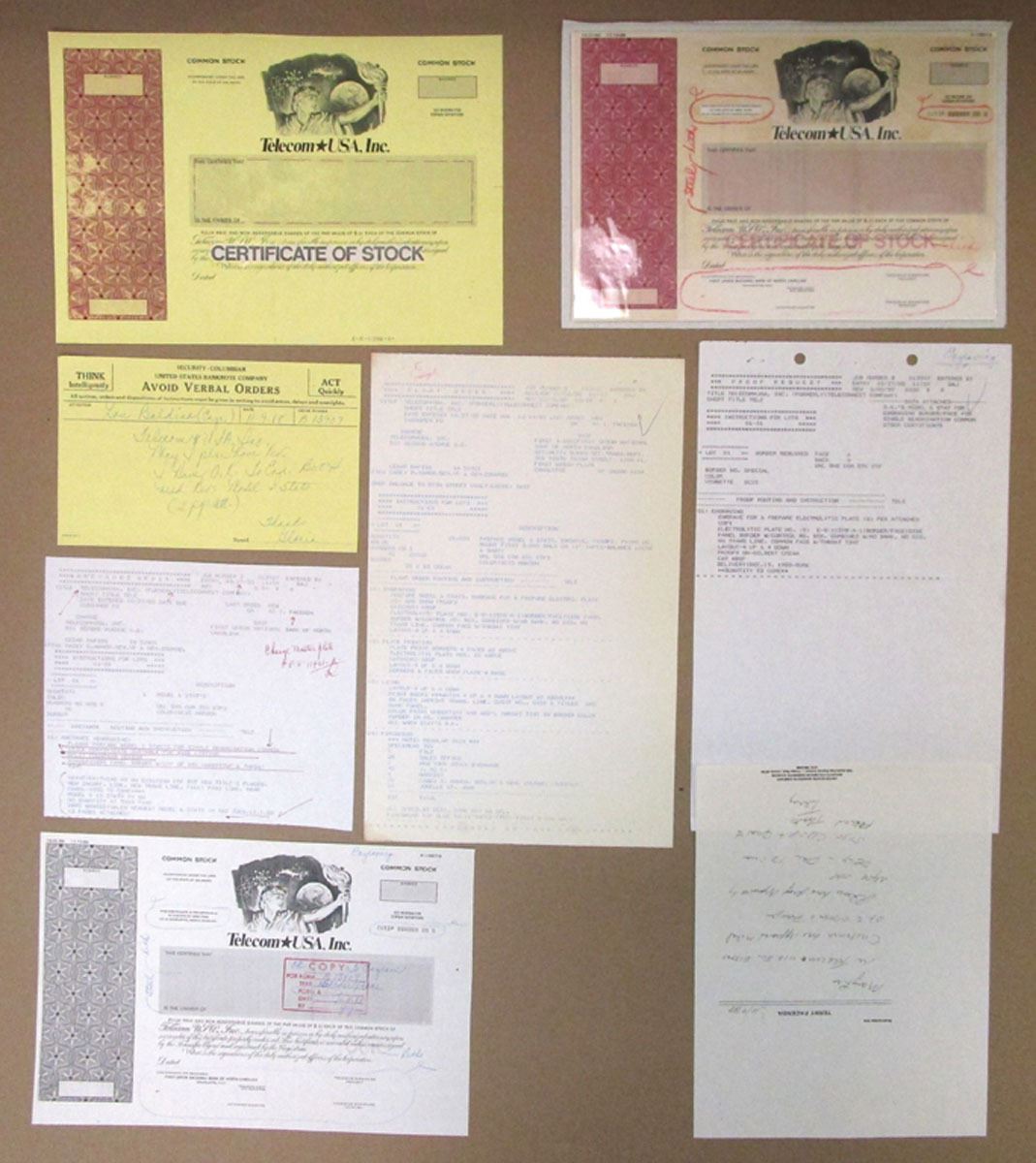 Delaware, 1988. Production file from Security-Columbian United States Banknote Co. Archives. File includes order forms, mock ups, and more, VF to CU condition. (8). Telecom USA, Inc. was a telecommunications company that operated primarily in the United States. It was known for providing long-distance telephone services to residential and business customers. Telecom USA was founded in the 1980s and was a significant player in the telecom industry during the 1990s. However, in the early 2000s, it faced financial difficulties and eventually filed for bankruptcy in 2002.