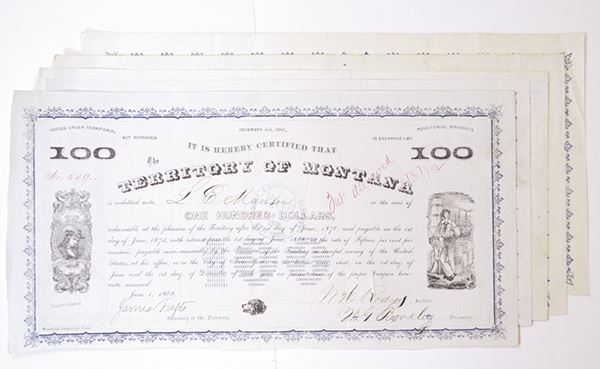 MT Territory. $100 Territorial Warrants. Issued, Cancelled. Very Fine. 5 pieces.