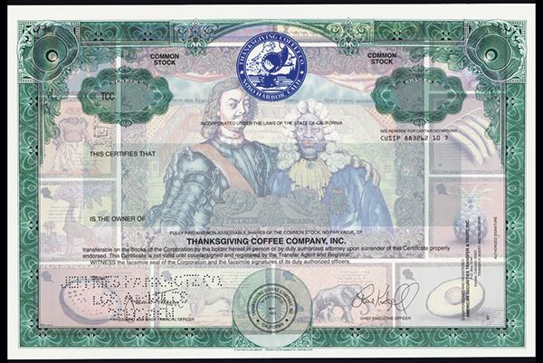 California, Noyo Harbor, Los Angeles, ND, Odd Shares, Common Stock, Round blue seal, multicolored background with portraits and animals, Green frame, pin cancels, XF. Jeffries BNC.