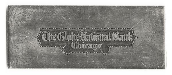 Chicago, Illinois. ca.1880-1890's. 96x39x3mm steel die, lettering in a Gothic font; the bank went into liquidation Dec.1898. XF condition. Unique in archive.