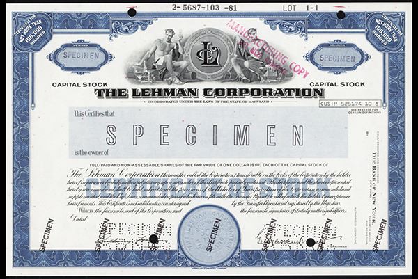The Lehman Corp., 1981 Specimen Stock Certificate