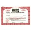 Minnesota, ND (1950-60s). 1000 Shares Specimen Stock Certificate, Black text with pink border and underprint, Scene of a lake at top center. Black specimen overprints, 00000 serial number and POCs. VF condition, ABNC. The Theodore Hamm's Brewing Company was an American brewing company established in 1865 in St. Paul, Minnesota.