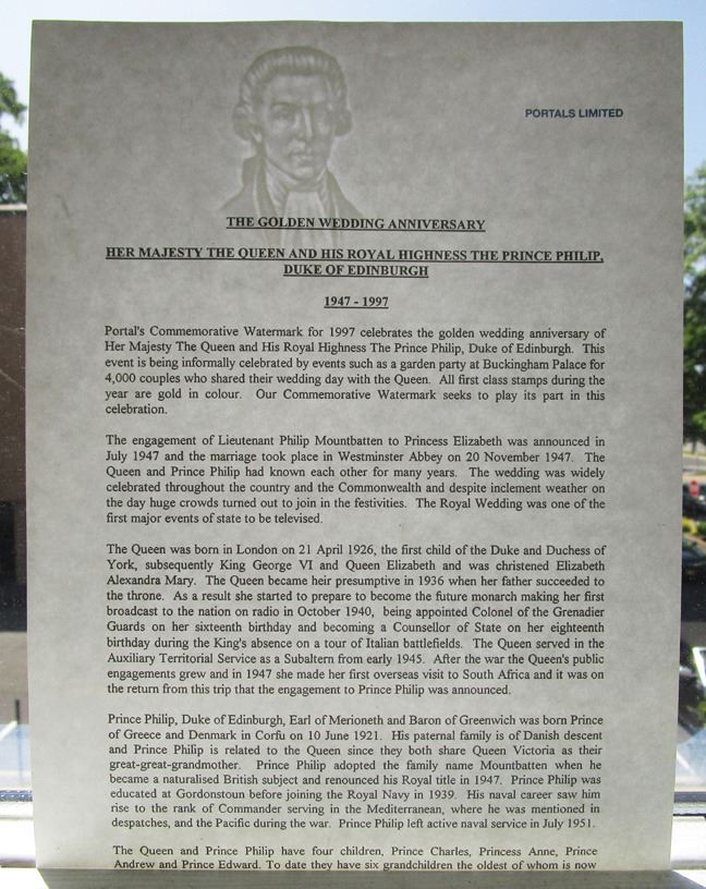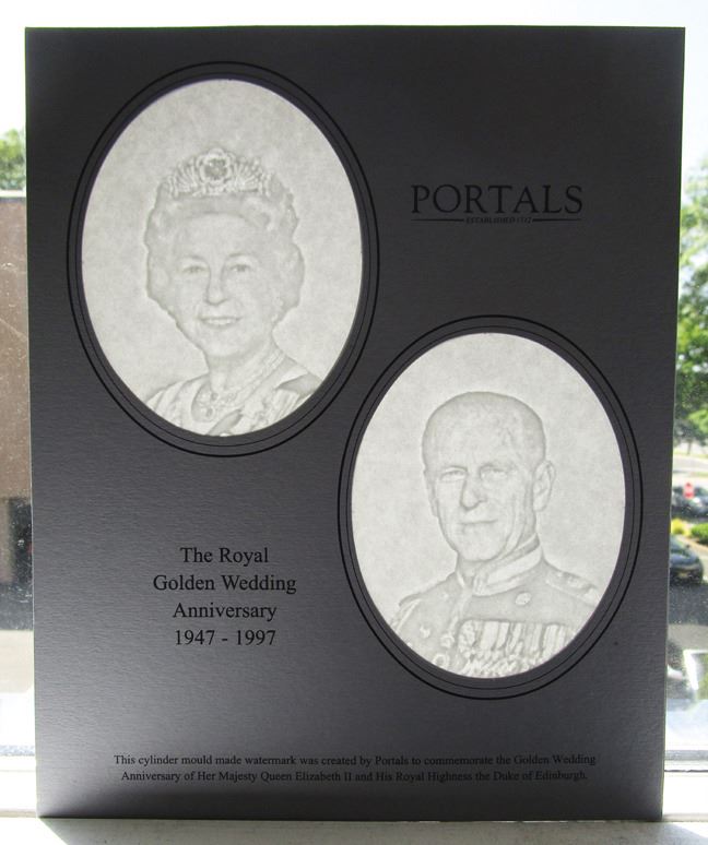Great Britain, 1997. Lot of 2 Items, Includes: Portals Watermark commemorating the Golden Wedding anniversary of Elizabeth II and Price Philip, that is easy to see if held up into the light. Included in lot is an informative letter from Portals Ltd., with the history of Elizabeth's relationship with Prince Philip, which also incudes a watermark of an early English gentleman on the top of the sheet. Both are in Uncirculated to CU condition. TDLR and Portals. (2). Sold "AS IS" no returns accepted.