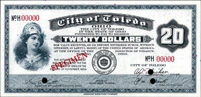 Toledo, OH. City of Toledo, 1933 Depression Scrip