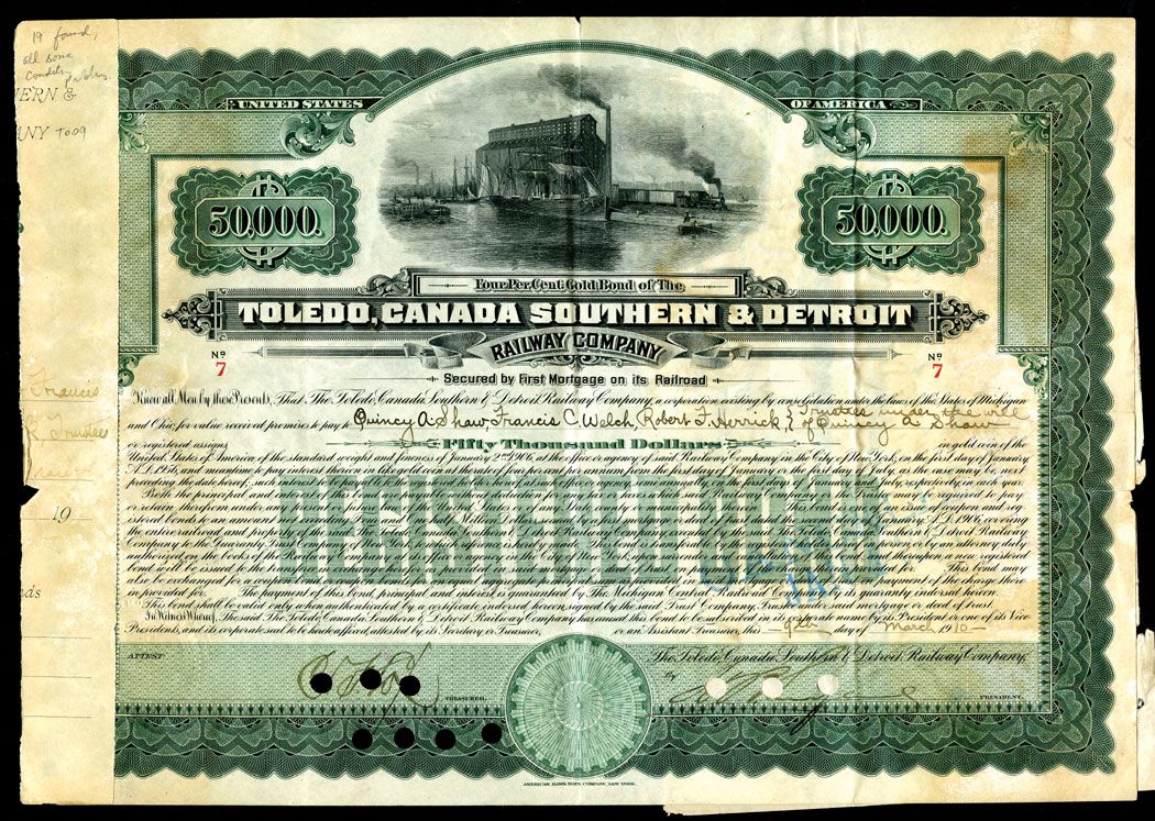Toledo, OH, Toledo, Canada, Southern and Detroit Railway Co., Bond.