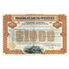 Indiana. $1,000 Registered 1st Mortgage 4% Gold Specimen Bond, Black print on brown border and under tint on horizontal format, Locomotive stopped at railyard at bottom with company title at top, Specimen overprints and POC's, VF-XF condition, FLBNC. Only known as a specimen in Cox. Rare variety, 3 found in the ABN archives in 2002.