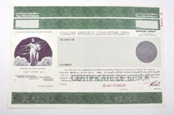 Delaware. Odd Shares Common Stock Specimen Certificate, Black print on green border and under tint, Allegorical woman at left side, Specimen overprints and Pin punched Specimen, VF-XF condition, S-C USBNC.