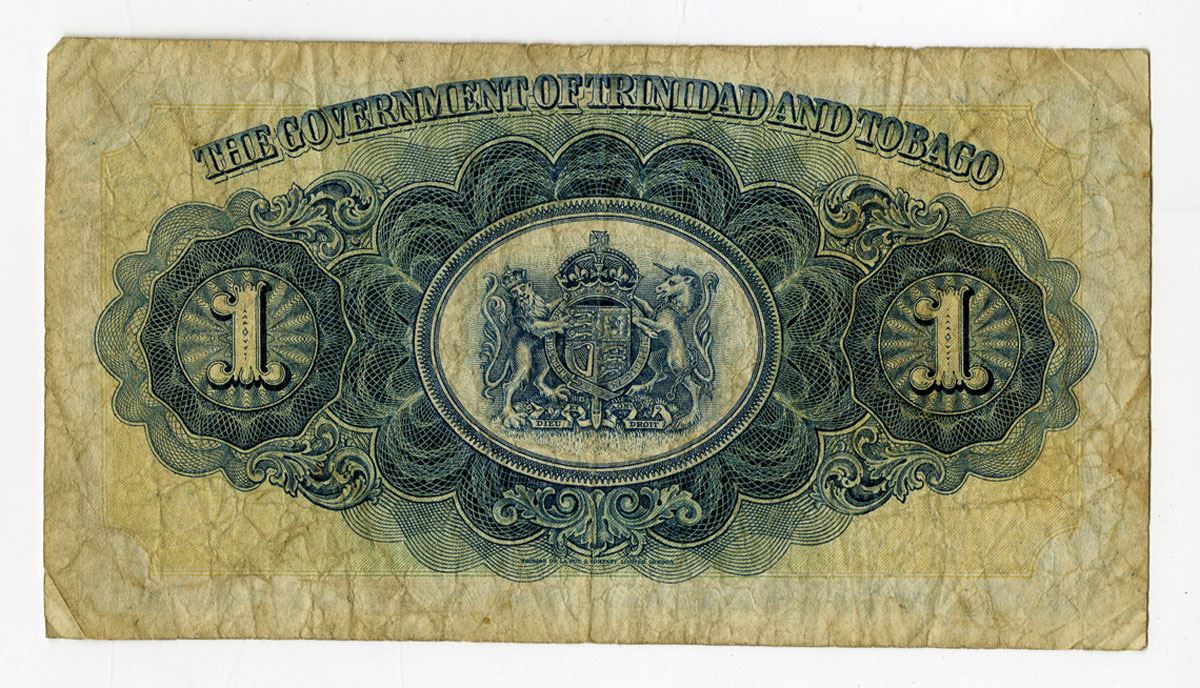 Trinidad & Tobago, 1942. 1 Dollar, P-5c, Issued Banknote, Blue on m/c underprint with sailing ship at left and palm tree at right, Good to Fine condition, TDLR.