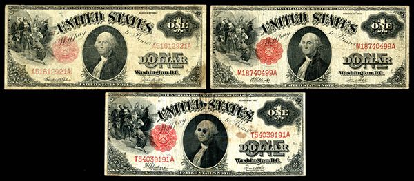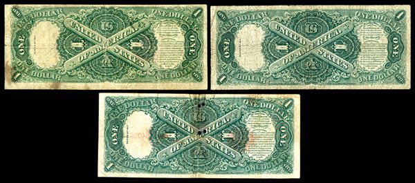 Trio of U.S. Large Size $1 Legal Tender Notes. 1923. 1) Fr#36, Teehee| Burke, VG. 2) Fr#38, Elliot | White, Fine. 3) Fr#39, Speelman | White, Fine details, but holed and stained.
