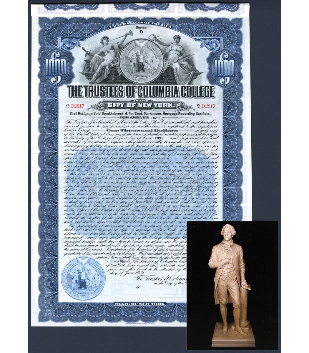 New York, 1909, $1000, 4% Series D 1st Mortgage Gold Unissued Bond, #D2817, Black print with blue border and underprint, School Emblem top center flanked by allegorical women, VF-XF condition, ABNC.