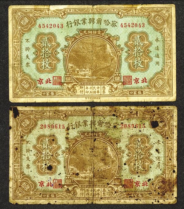 Peking/Kalgan. 20 Cents, P-S848a, S/M#C1-41a and S848b S/M#C1-41b, Issued banknotes, Signatures of Pao Lien and Li En Ching, VG to Fine with edge faults, small thins and soiling, still scarce notes. BEPP. (The Pogrebetsky Family Archives)