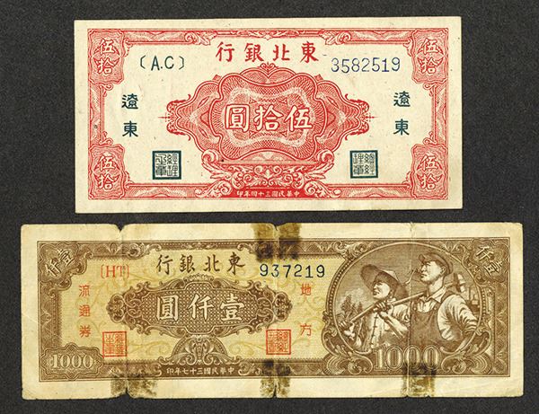 China. 50, 1000 Yuan. P-S3731; S3758. S/M T213-11; 52. First is Uncirculated; second Fine with tape residue at vertical folds. 2 pieces.