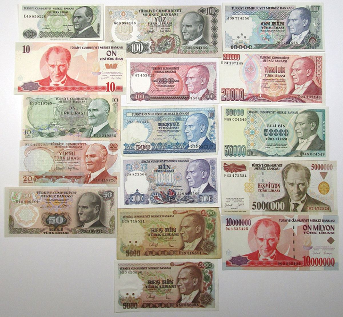 Turkey, L.1930 (1966)-L.1970 (1999). Lot of 16 Issued Banknotes , All have portraits of President Kemal Ataturk on face and range from VF to Au condition. (16). Sold "AS IS" no returns accepted.