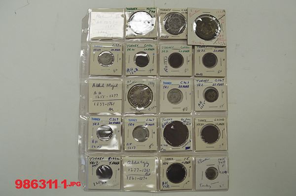 Turkey. 14th Century to present, early group is identified; 6 Crown sized silvers pre Republic. Republic issues are represented in many date runs but few in silver. Generally Very Good to Fine on the early issues; Very Fine or better on the more modern types. Just over 250 pieces.