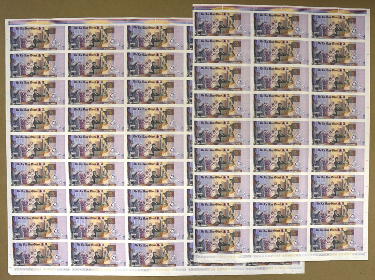 United Kingdom & Italy, ND (ca.2000s). Lot of 2 Uncut Sheets, One with 28 Notes and the other with 45 Notes, Brown and green on purple and m/c underprint with Beethoven at right, Back is m/c with Beethoven playing concert for women, Sheets are in AU to UNC condition. (2). Sold "AS IS" no returns accepted.