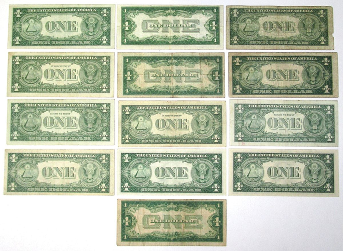 Washington D.C., 1928 to 1957. Lot of 13 different $1 Silver Certificate series, Includes: Series of 1928, Fr.# 1600; Series of 1928A, Fr.# 1601; Series of 1928B, Fr.# 1602; Series 1935B, Fr.# 1611; Series of 1935C, Fr.# 1612; Series 1935D, Fr.# 1613N; Series 1935E, Fr.# 1614; Series 1935F, Fr.# 1615; Series 1935G, Fr.# 1616; Series 1935H, Fr.# 1618; Series 1957, Fr.# 1619; Series 1957A, Fr.# 1620; Series 1957B, Fr.# 1621. Notes range from Fine to VF condition. (13). Sold "AS IS" no returns accepted.