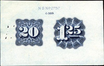 ca.1840's-1870's. 22 different proof "20" numeral counters with 12 of them compound proofs with 2 vignettes per impression of different denominations in combination with "20". All were used on obsolete banknotes, stocks, bonds, checks and various other security printed documents. All were printed by National BNC. All are printed on india paper and are LDP's or cut down LDP's in various colors, sizes and shapes. All are in XF condition. Scarce group. NBNC.