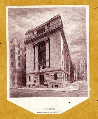 ca.1890's-1920's. 4 different ABNC buildings, 3 are variations of the New York City Building and the fourth is a vignette of the Bronx Plant, which is in VG condition due to ink stains on the proof. The 3 NYC building vignettes are of the same engraving with additional buildings in brown on one and no buildings in the other two. Extensive archival notations on file cards. One was used for a calendar. All are in Choice condition. Rare and interesting assortment. ABNC.