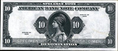 1970-1980's. P-unlisted. 10 Tyvek banknote. "10 Specimen Note". Experimental thin Tyvek note. The note is printed on very thin Tyvek paper. Face has black printing and the back has green printing. Unc. Rare Tyvek item. ABNC.