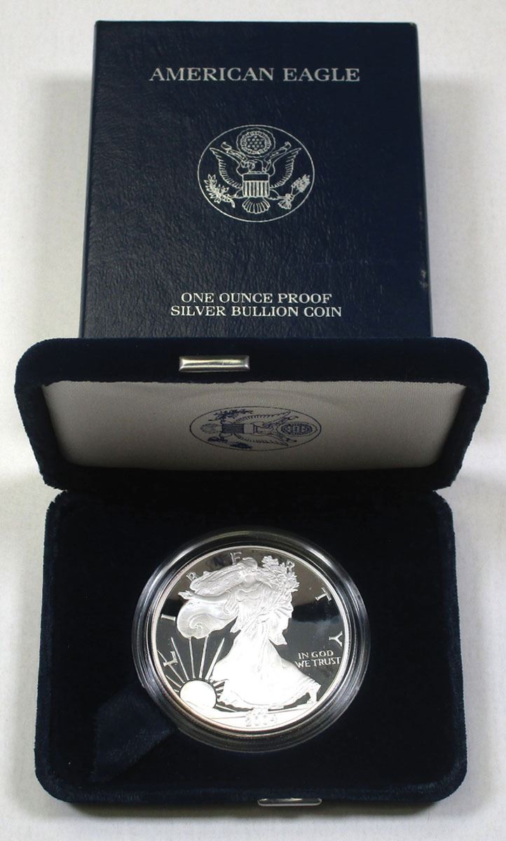 Washington D.C., 2004. Walking Liberty 1 Ounce Proof Silver Bullion Coin in Original Packaging, Obverse shows Walking Liberty design and reverse shows and eagle with shield, Contains 1 troy ounce of .999 silver, Gem Unc condition.