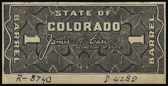 (3 different cut down proofs in black. 3.5 x 1.5 inches. 1). 1/4 Barrel; 2. 1 Barrel of Beer. 3. 1/4 Barrel with "4" cut out from stamp. All are cut close except for bottom margin. E.A.Wright Bank Note Co. was the engraver. VF to XF condition. Unique in archive.