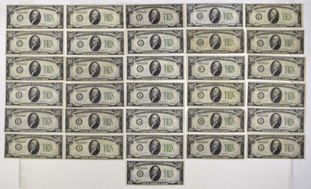 Washington D.C., 1934. Lot of 31 Issued Federal Reserve Notes, Includes: $10, Series 1934, Fr.#2005 (2); $10, Series 1934A, Fr.#2006 (26); $10, Series, 1934B, Fr.#2007 (3). Notes are in Fine to VF+ condition. ($310 FV), (31). Sold "AS IS" no returns accepted.