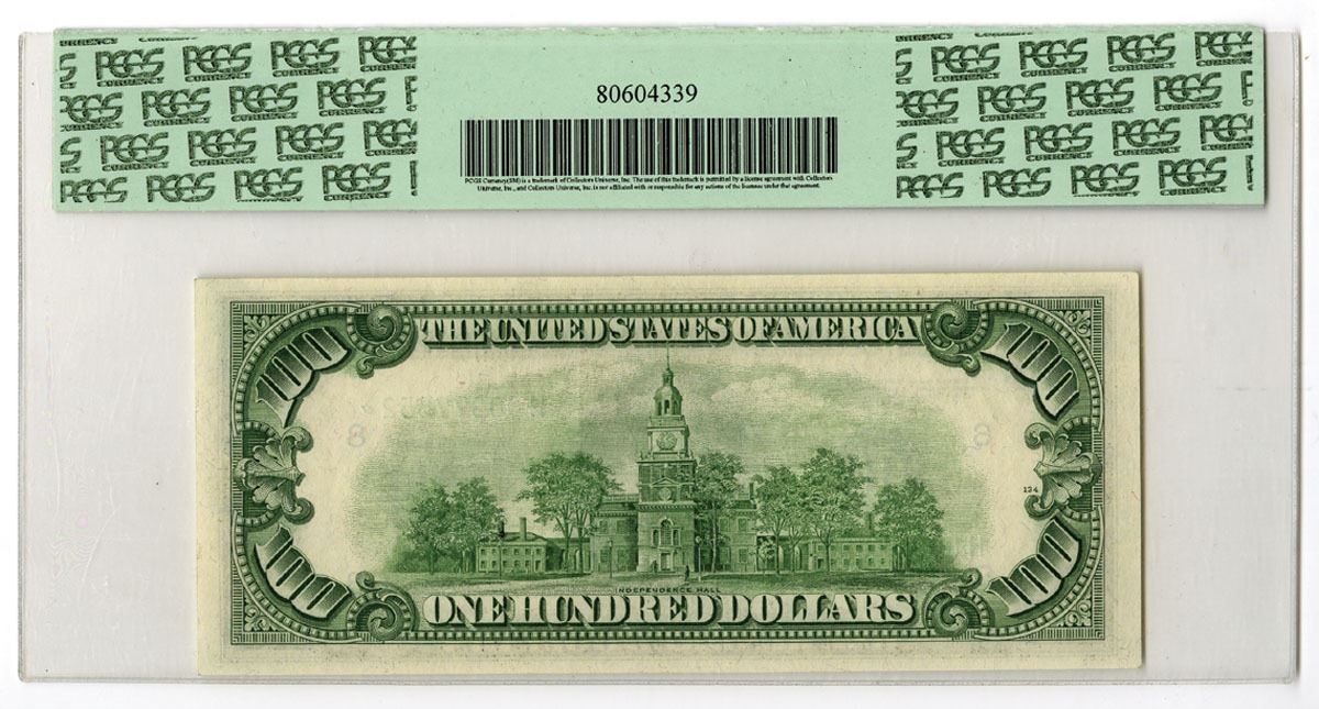 Washington D.C., 1950B. $100, Series of 1950B, P-442b, Fr.# 2159, Issued Banknote, Black with Benjamin Franklin at center, Green seal at right, Back is green with Independence Hall at center, Priest | Anderson Signatures, S/N H00377852* pp L25/134, PCGS graded Choice About New 58PPQ.
