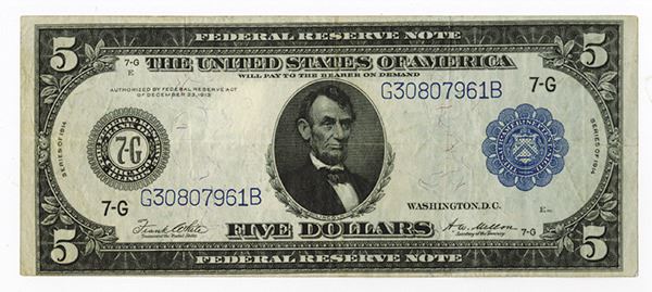 Washington, D.C., $5, Issued, White | Mellon signatures, S/N G30807961B, VF to Choice Very Fine condition.