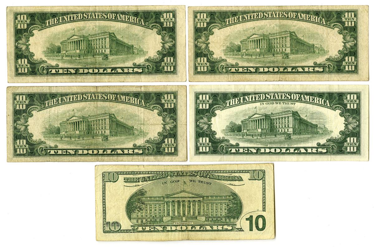 Various States, 1950 to 2003. Lot of 5 Issued Replacement or Star Notes, Includes: $10, P-439b (2), Series of 1950B, Fr.# 2012B*; $10, P-439d, Series of 1950D, Fr.# 2014B*; $10, P-445b, Series of 1963A, Fr.# 2017E*; $10, P-518, Series of 2003, Fr.# 2037A*. Notes range from Choice Fine to XF condition. (5). Sold "AS IS" no returns accepted.