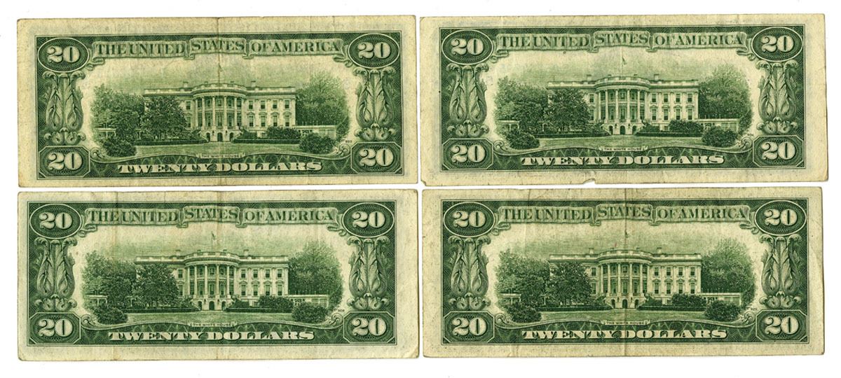 Various States, 1950. $20, Series of 1950B, Fr.# 2061*, Group of 4 Federal Reserve Replacement or Star Notes, Green seal at right, Priest | Anderson signatures, Notes range from VF to Choice VF condition. (4).