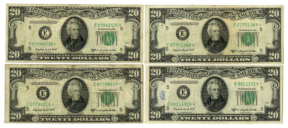Richmond, Virginia, 1950. $20, Series of 1950C, Fr.# 2062E*, Group of 4 Issued Replacement or Star Notes, All have Smith | Dillon signatures and Green seals at right, Notes range from Choice Fine to Choice VF condition. (4).