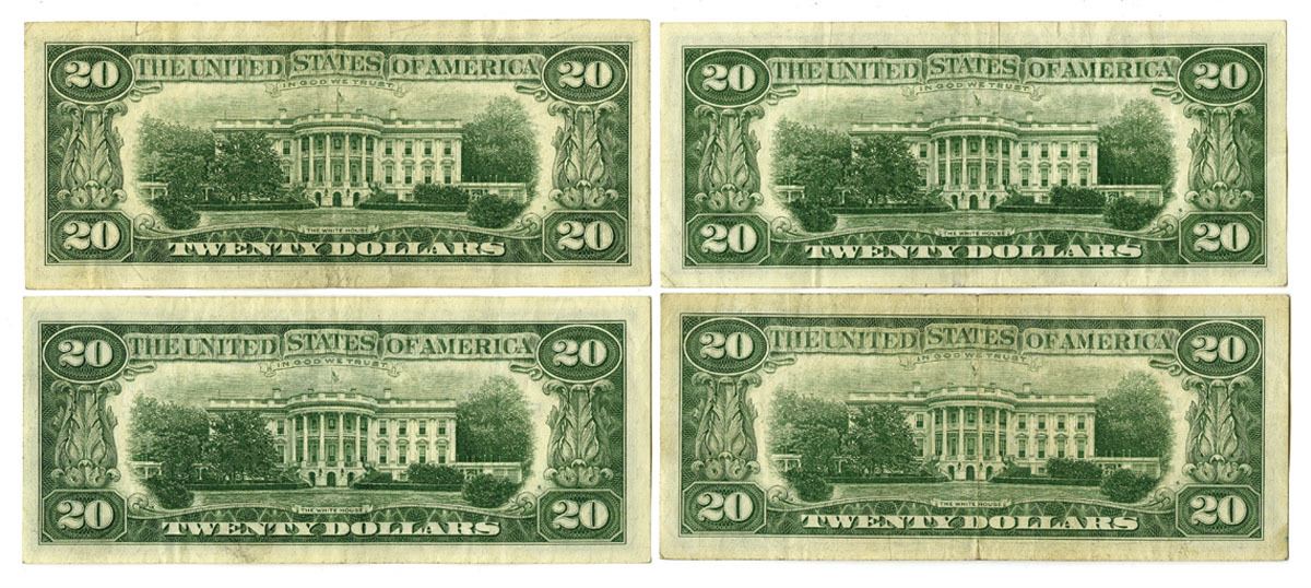 Various States, 1963. Lot of 4 $20 Series of 1963 Banknotes from Various Districts, Includes: New York NY, Fr.# 2065B*; Richmond VA, Fr.# 2065E* (2); Kansas City MO, Fr.# 2065J*. All have Granahan | Dillon Signatures and Green seal at right, Notes range from VF to Choice VF condition. (6).