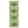 10 cents, Issued, Green, Washington in middle, ABNC monogram on back, Uncut Strip of 4 notes, folded between the middle pair of notes, All are crisp and if separated and trimmed, 3 of the 4 would have excellent margins and could grade 64 or 65.