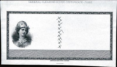 1933-34. $-- Proof of border and vignette without text. Allegorical woman with helmet on left. LDP with "General Clearing House Certificate - 71923. Printed on india paper. Rare. ABNC.