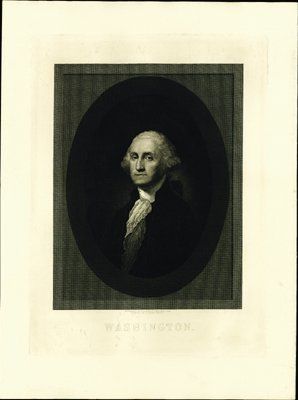 ca.1880's-1920's. Proof of George Washington portrait engraved by H.B.Hall's Sons, New York from a painting by Gilbert Stuart. 15 by 20 inches. Printed on thin card stock. XF condition.