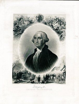 ca.1880's-1920's. Proof of George Washington portrait engraved by H.B.Hall's Sons, New York from a painting by Gilbert Stuart. 15 by 20 inches. Printed on thin card stock. XF condition.
