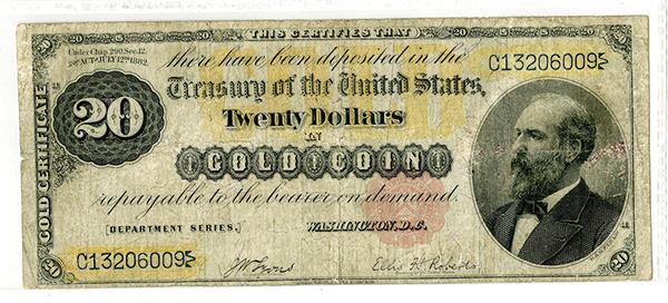 Washington, D.C., $20, Lyons | Roberts, Garfield at right, S/N C13206009, CGA graded Very Good 8. BEP. Collectible example of this popular series.
