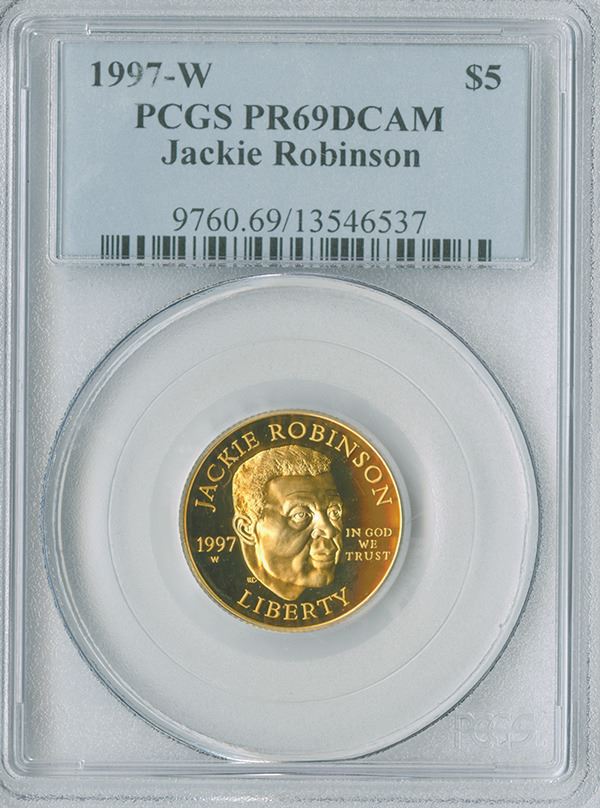 Jackie Robinson $5, 1997 W, gold, PCGS graded PR69DCAM, Slab# 9760.69