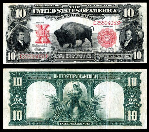 U.S. Note, S/N E25594053, pp A, Elliot | White, PMG graded Very Fine 30, very attractive note for the grade with bright colors, sharp corners and large even margins.