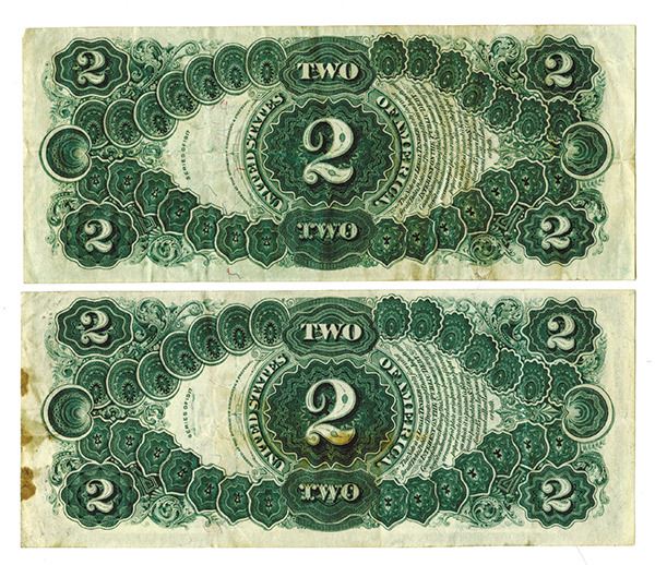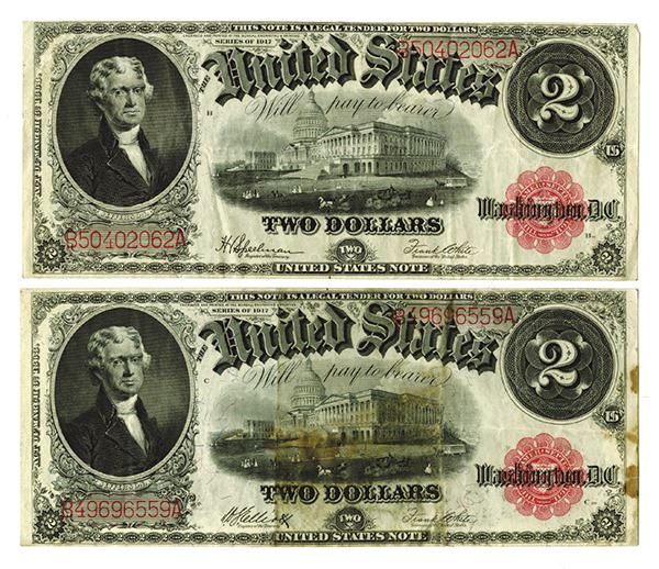 U.S. Legal Tender, Lot of 2 notes, both are $2, Series of 1917, one VF and the second Fine with stains.