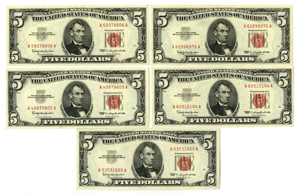 Washington D.C., 1963. $5, Series 1963, Fr.# 1536 (5), Issued Banknotes, Red seals at right, Granahan | Dillon signatures, Choice XF-AU (3) to Unc. To CU (2) condition. (5).