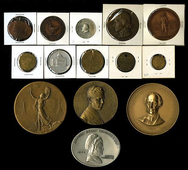 U.S. Medal Assortment. Lot of 14 bronze and silver colored medals. Includes Lindbergh 1927 Commemorative medals (2); United Mine Workers, WW I Medal and many others, weight approximately 2.5 lbs.