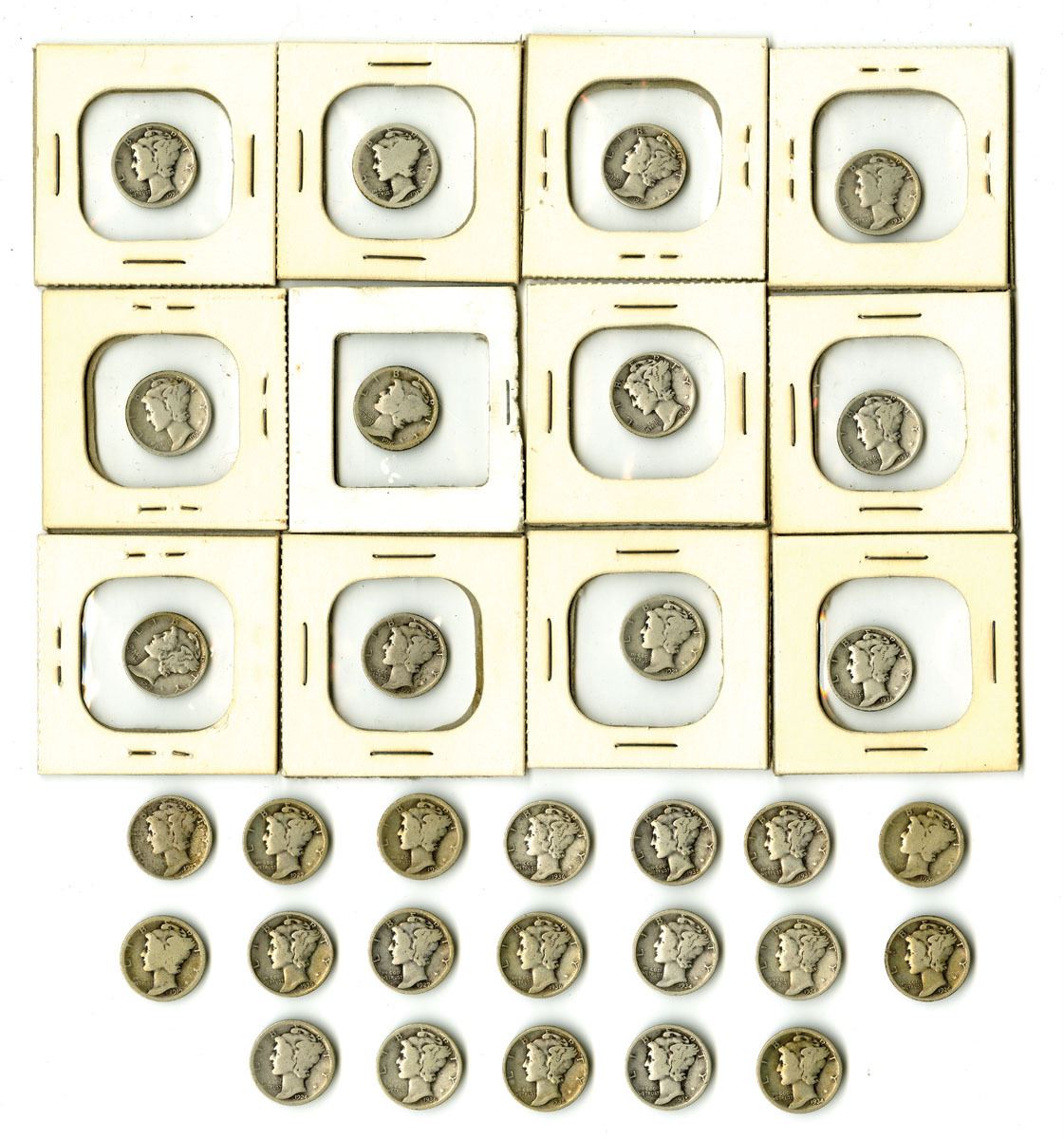 Washington D.C., 1916 to 1939. Lot of 31 Mercury Dimes, Includes: 1916-S (Reverse), 1917, 1919, 1920 (3), 1923, 1924 (2), 1925, 1926 (2), 1927 (3), 1934 (3), 1935 (5), 1936 (3), 1936-D, 1937, 1939 (2), 1939-D. Coins are 90% and in VG to VF condition. ($3.10 Face Value of 90% Silver.) (31). Sold "AS IS" no returns accepted.