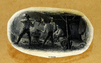Used on Obsolete Banknotes, stocks and bonds. ca.1840's-1850's. 6 different vignettes (one is a compound proof of 2 vignettes on one plate) of miners working in mines, coal mining and coal train used on obsolete banknotes, stocks, bonds, checks and security printed documents. The vignettes range from 2 to 4 inches in size. All are printed on india paper and mounted on manila cards. Printers include TCC; RWHE; BCC and unattributed. All are in VG to choice condition. Please inspect. Extremely attractive and rare group of early mining vignettes found on obsolete banknotes.
