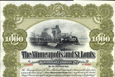 1913. $1,000. Specimen 6%, Gold Note. Olive green border. Locomotive going over trestle with factory in back. XF condition. Red specimen overprints, POC's and "00000" serial numbers. Coupons attached. Rare certificate. ABNC.