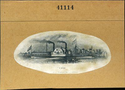 Used on Obsolete Currency. ca.1840's-60's. 10 different proof navigation vignettes printed by DWC. All include images of sailing ships, steamships and steamboats. The vignettes range from 2 to 3 inches in size. All are printed on india paper and mounted on manila card with plate number at top of the card and on the india paper. A few have light foxing or minor faults including internal tears from mounting, the balance are in XF to choice condition. All are unique in the archive in this format. Please inspect. Another rare group of early ship vignettes that would be impossible to duplicate. DWC.