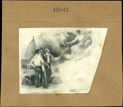 1840-50. Proof. Blacksmith, Sailor & Farmer looking up to Liberty with Eagle & Cornucopia. Unique in archive. DB&Co. AU with light glue stains.