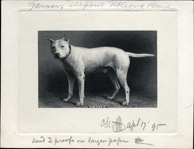 1895. LDP of well known vignette of "Prince" used on stock certificate for Farmers Deposit National Bank. Vignette proof has "OK" marked onad signed on bottom. India paper mounted to large card. Unique in archive. ABNC.
