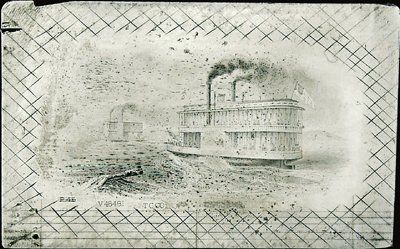 ca.1840's-50's. 90x56x3mm steel die. Scene shows two "double decker" steamboats on the river, dies "P45" (crossed out), "V46481 TCCO", cross-hatching all around. XF condition. Unique in archive. Printed and engraved by Toppan, Carpenter & Co.
